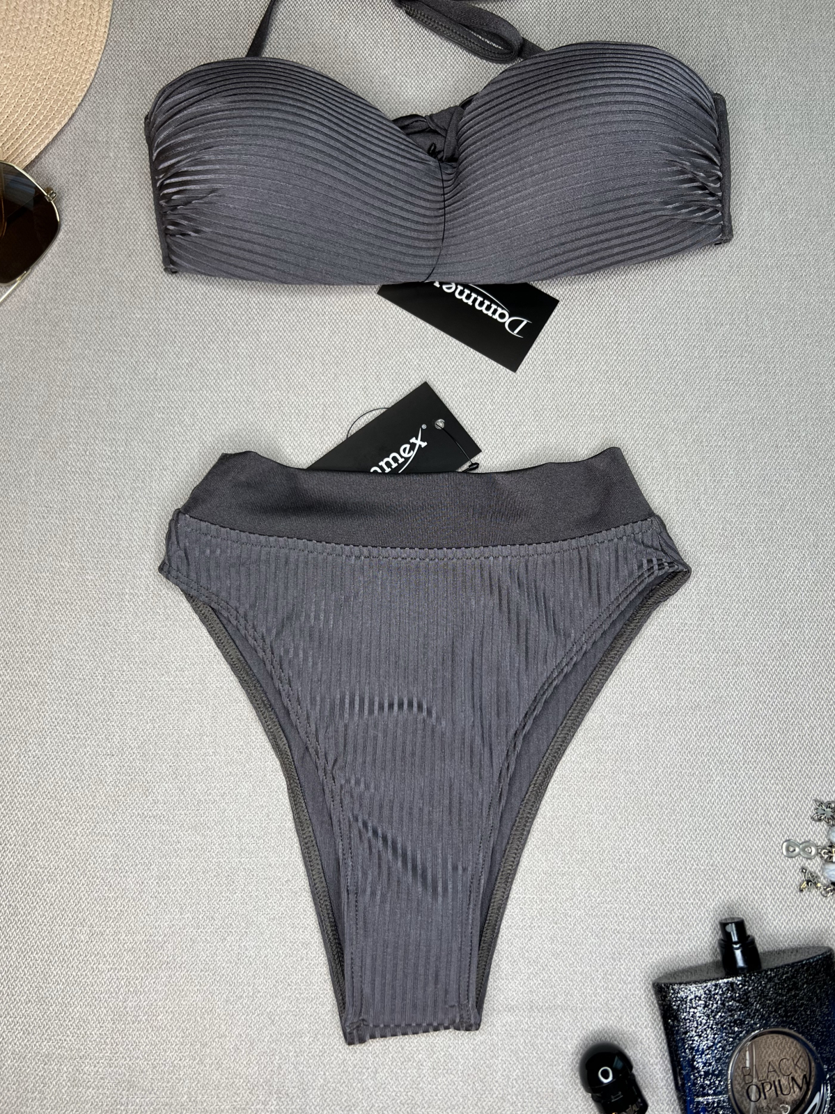 Descoperă eleganța și confortul unui costum de baie cu slipi cu talie înaltă și sutien cu cupă. Acest design clasic și rafinat îți oferă o potrivire perfectă și susținere optimă pentru a te simți încrezătoare și fermecătoare pe plajă sau la piscină.